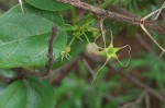 Perennial twining herb with 1-2 annual stems, up to 0.5-3 m long, growing from a slightly flattened or concave tuberous rootstock. Milky sap present. Leaves opposite, variable, often on the same plant from linear-oblong to ovate-lanceolate, 1-7 cm long, fleshy, mostly hairless; base tapering into a petiole up to 8 mm; margin often wavy. Flowers in 1-many-flowered sessile axillary clusters. Corolla tube, c. 2 cm long, slightly curved, slender with a subglobose swelling at the base, pale purplish, greenish in the upper third; lobes lanceolate, 5-7 mm long, tapering into a long thread-like tip; lobes often spreading, sometimes with hair-like tips inflexed and connected, pale yellowish-green. Fruit in 2 follicles, fusiform, up to 16 cm long. |
