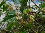 Strong climber or liane. Stems with clear latex. Leaves opposite, heart-shaped. Flowers in many-flowered branched heads. Corolla with a white tube and yellow to pale orange slender lobes, united at the apices, forming a cage. |