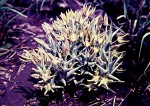 Succulent perennial herb with stems up to 10 cm high, forming clumps up to 50 cm in diameter. Inflorescences 1-8 per stem, mainly in the upper half. Flowers 1-several developing in succesion, 25-35 mm in diameter, usually not expanding fully, deeply and narrowly lobed, smooth and pale green outside with a few darker veins, pale greenish-yellow to white inside with transparent, clavate cilia up to 2.5 mm long along the lower margins. Corona 8-10 mm high, cream, raised above the corolla tube on a stype c. 1 mm long. |