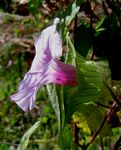 Annual or perennial twining herb, with stems up to 4 m long. A vigorous twiner, sometimes covering surrounding vegetation. Stems, leaves, peduncles and large bracts hairy. Leaves broadly heart-shaped with a deeply cordate base, up to 13 cm long, hairy on both surfaces, often more densely so below. Flowers funnel-shaped, whitish to pink, often darker in the throat, in heads arising from a distinct boat-shaped bract. Capsule spherical, hairless. See I. pileata for comparison. |
