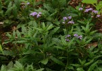 Erect perennial herb, up to 50 cm tall, often forming extensive clumps Leaves alternate or sessile, elliptic-oblong, 4-9 cm long, roughly hairy, particularly on the veins; margins with widely spaced shallow teeth, distinctly wavy. Flowers in terminal heads of several curved, one-sided spikes (scorpioid cymes). Corolla bright purple with an orange-yellow throat. Fruit in small paired nutlets with a rough surface. |