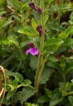 Perennial herb with annual stems, up to 40 cm, growing from a woody rootstock. Leaves sessile or shortly petiolate, often absent or few on flowering stems, ovate, elliptic, up to 30 mm long, hairy usually only on the veins beneath; margin shallowly crenate to entire. Inflorescence lax or condensed; bracts leaf-like, elliptic, usually up to 5 mm long, entire, hairy. Pedicels 3-4 mm long erect. Corolla deep purple, with darker posterior lip, sometimes yellowish-green; tube 9-13 mm long, usually sharply bent upwards at the base,dilating at the throat. |