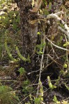 Somewhat scrambling aromatic perennial, often mat-forming. Stems up to 50 cm long, succulent, 4-angled, often rooting at the nodes, densely covered with glandular and eglandular hairs and red sessile glands. Leaves opposite, spreading, succulent, elliptic, rhombic or obovate, 10-35 mm long, same hairs and glands as the stems; margin serrate, sometimes slightly rolled under; petiole 0-5 mm. Inflorescence dense spike-like with closely touching or slightly separated 6-flowered verticils; bracts succulent, persistent, erect or soon spreading, elliptic or oblong, c. 10 mm long, often reddish on the margins. Calyx 3 mm long hairy and with sessile glands. Corolla white marked blue, blue or purple, 11-18 mm long with red sessile glands and scattered hairs on the lobes; lower lip 6-10 mm long, horizontal, boat-shaped almost enclosing the stamens. |