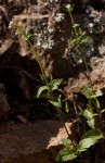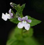 Erect annual or short-lived perennial herb, up to 65 cm. Stems 4-angled; leaves ovate with serrated margins. Most parts with short white hairs. Flowers in short racemes, white to pale mauve with purple stripes. |