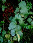 Straggling shrub or tree up to 12 m with drooping sub-quadrangular branches. Leaves opposite, broadly ovate, 4.5–10 cm long, leathery, hairless, minutely glandular-punctate beneath; margin shortly serrate-crenate; petiole 4–12 mm long. Flowers in clusters on the older leafless branches and trunk on pedicels 10–14 mm long with pair of bracteoles below the middle. Corolla orange-yellow to brownish-red, 25–33 mm long, tube curved, widening above to 6–10 mm, unequally 4-lobed. Stamens long exserted. Style 20–38 mm long. Fruit an ovoid to subglobose berry, 12–18 mm long, blackish-purple when ripe. |
