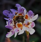 Erect herb, up to 16 cm high, minutely glandular-pubescent occasionally sparsely mixed with whitish hairs. Leaves opposite, sometimes alternate above; lower leaves obovate to broadly elliptic-lanceolate, 7–17 mm long, tapering to a petiole-like base; upper leaves linear to lanceolate-linear, 4.5–20 mm long; magins entire to laxly dentate. Flowers sessile to subsessile in short, terminal, spherical or slightly elongated heads. Bracts oblong, 1.6–2.4 mm long. Calyx 1.9–2.2 mm long, deeply 5-lobed. Corolla white to pale pinkish-mauve with yellow-orange throat; tube up to 2 mm long, widening at mouth; lobes broadly obovate, c. 1.5 mm long. Capsule c. 2.5 mm long. |