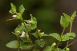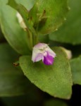 Small patch-forming annual herb, less than 5 cm tall. Stems 4-angled, leafy. Leaves opposite, sessile (lower leaves shortly petiolate), ovate, up to 1.5 cm long, hairless; margin sparsely crenate-dentate. Flowers solitary in the upper leaf axils, very shortly pedicellate, white with pink marking; upper lip bifid; lower lip 3-lobed. Fruit a subsessile, narrowly ellipsoid pointed capsule, up to 8 × 2.5 mm. |