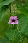 Erect annual herb, 25-200 cm. Leaves opposite, mostly 3-foliolate, upper leaves often simple; leaflets long and narrow, terminal leaflet longest. Extra-floral nectaries normally single. Flowers solitary in the upper leaf axils, mauve with a darker purple centre. Fruit a more or less oblong capsule, c. 40 × 6 mm, erect with an apical beak 6-8mm long, distinctly bent outwards. |