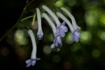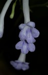 Single-leaved monocarpic herb. Leaf ovate or oblong, usually c. 70–150 mm long, rarely longer up to 350 mm, green on both surfaces, shortly hairy. Inflorescence with flowers tending to be massed at one level, hairy with non-glandular hairs, hairs longer and deflexed in the lower part. Peduncles 1–4, up to 150 mm long; pedicels up to 20 mm long; bracts linear, c.5 mm long. Calyx divided almost to the base into 5 linear-lanceolate segments 2–3 mm long, shortly pubescent. Corolla very light violet; tube cylindric, 3–5 mm in diameter, 22–36 mm long, pubescent outside, sometimes wholly white, sometimes light to medium violet inside and on the lobes, often with slightly darker patches in the throat; corolla lobes small in relation to tube, more or less spreading, upper two 2–5 mm long and wide, lower lip 5–8 mm long, lobes 3–6 mm long and wide, all rounded. Fruit slender, 50–80 mm long, shortly pubescent. |