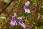 Semi-erect, somewhat scrambling, perennial subshrub, up to 50 cm tall, woody at the base. Leaves up to 6 × 2.5 cm, usually smaller, elliptic, ovate or obovate, more or less densely hairy. Flowers in sessile, axillary 3-12-flowered clusters, surrounded by elliptic to obovate leaf-like bracts, up to 1.5 cm long. Corolla extremely variable in colour, white to cream, pale to deep mauve, purple-blue, pale pinkish-white or rarely yellow, all colour forms sometimes with darker purple markings in the throat, 2-lipped; lower lip 3-lobed, upper lip less deeply 2-lobed. Stamens 4, only 2 protruding beyond the corolla mouth. Calyx with 5 narrow lobes, often with stalked, sticky glands. Capsule 10-16 mm long. |