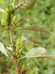 Erect, decumbent or prostrate perennial or subshrub, 10-50 cm tall. Leaves ovate, lanceolate or elliptic, pinnately veined with 3-5 veins. Inflorescence consisting of axillary, unilateral spikes 1.5-4.5 cm long. Sterile bracts falcate, in two divergent rows, green, turning brown; fertile bracts appressed to the calyx. Corolla pale blue to mauve or white with purple markings on lower lip and throat. Posterior (shorter) stamens 1-thecous or with a vestigial second theca; thecae glabrous. Capsule 7-10 mm long with face oblong-elliptic, potentially 4-seeded. |
