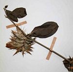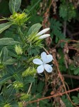 Scrambling perennial herb, up to c. 1.3 m tall. Stems finely hairy. Leaves opposite, petiolate, oblong-elliptic, up to c. 8 × 3 cm, dark green above, paler below. Flowers in axillary clusters with lanceolate spiny bracts. Corolla c. 2 cm in diameter, white. |