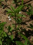 Slender annual herb. Stems ascending to erect, up to 40 cm high, often purple-tinged, with opposite lines of short hairs along the length. Leaves opposite, elliptic up to 3.5cm long, ciliate hairy along the margin and often a fringe of longer hairs near the base. Flowers in 3-7-flowered spikes in the upper leaf axils, white with mauve-purple markings in midlobe of the lip. |