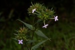 Perennial, branched herb or shrublet, up to 1.2 m tall. Stems 4-angled, woody at the base. Leaves opposite, lanceolate, up to c. 7 × 2.3 cm, with a long, narrowly tapering, pointed apex, hairless to pubescent, particularly on the midrib below. Flowers in a terminal heads on the upper branches, sourrounded by leafy bracts. Corolla pale blue, lilac or purplish-pink; tube 1-1.7 cm long; lobes 5-4.5 mm long. Fruit ovoid-globose, 5-7 mm long, beaked. |
