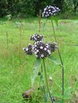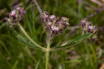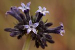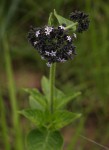 Erect perennial herb, up to 1.3m tall, with 1-4 unbranched stems growing from a woody rootstock, occurring in various types of grassland and open woodland. Leaves opposite, 3-15 cm long, oblong-lanceolate, elliptic or ovate, pubescent above and bristly hairy on the veins below; petiole very short or absent. Flowers in spherical heads, pale to deep purple-blue. Fruit a capsule, c. 4 × 3 mm, with a short blunt beak. |
