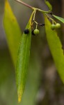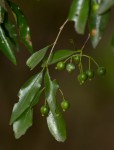 Shrub or small evergreen tree. All parts glabrous. Leaves opposite, simple, narrowly elliptic, up to 10 cm long, shiny green, leathery; domatia absent; stipules ovate, 2-5 mm long, falling early. Flowers in pendunculate, branched, axillary heads; corolla c. 7 mm long, creamy-white; lobes reflexed. Fruit spherical, black when ripe, crowned with the remains of the calyx.
