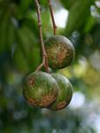 Shrub or small to medium-sized tree. Leaves opposite, lanceolate to elliptic, glossy dark green, veining conspicuous on the under surface. Domatia present. Flowers solitary, axillary, trumpet-shaped, creamy-white with reddish markings in the throat. Fruits spherical, blackish when ripe, distinctly scarred by the old calyx limb. |