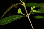 Shrub or small tree. Leaves opposite, more or less broadly elliptic, up to 13.5 cm long, stiffly papery or somewhat leathery, hairless, sometimes with hairtuft domatia below; margin entire. Flowers in up to 30-flowered umbels, yellowish-cream, small. Fruit round, 5-8 mm in diameter, yellow when ripe, edible. |