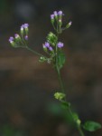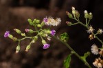 Erect annual to 1.3 m tall. Stems branching above, with short-stalked, long-armed T-shaped hairs, at least below. Lower stem leaves subspathulate, broadly ovate or lanceolate, tapered below into a long narrowly-winged midrib; apex shortly acuminate; margin crenate-serrate; upper stem leaves narrower. Capitula borne in a terminal panicle, very numerous, small (involucres 4-6 mm long). Phyllaries appressed, becoming reflexed. Corollas pinkish or pale mauve. Achenes 1.2-2 mm, terete, not ribbed, uniformly pubescent; outer pappus of distinct short linear fimbriate scales, 0.2-0.6 mm long; inner pappus of white setae 3-4.5 mm long. |