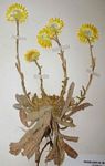 Perennial herb with unbranched stems, up to 40 cm tall, growing from a woody rootstock. Leaves in 1-several basal rosettes, up to 12 × 2 cm, elliptic-spathulate, whitish woolly, sometimes only on the margins; stem leaves up to 30 × 5 mm, oblong-lanceolate, glandular, often woolly on the margins. Capitula solitary, rarely 2-3, up to 3.2 cm in diameter, when fully opened. Phyllaries 7-9-seriate, bright yellow, 5-10 mm long, lanceolate-oblong. Florets yellow, numerous. |