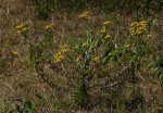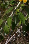 Scrambling, branching perennial herb up to 2 m tall. Stems whitish-woolly, leafy to the apex. Leaves up to 15 × 5 cm, more or less narrowly oblong or elliptic, narrowing into a pseudopetiole and clasping the stem, thinly greyish velvety above when young but becoming green and hairless later, white woolly beneath; veis prominent beneath; margin wavy, entire or minutely scalloped. Capitula hemispherical c 1.2 cm in diameter, forming more or less lax panicles at the ends of branches. Involucral bracts shiny yellowish or straw-coloured, sometimes tinged with brown, 4-5-seriate, ovate to lanceolate. Florets yellow. |