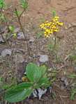 Perennial herb, usually with leaves confined to a basal rosette and with a leafless stem. Leaves rough above, green and white-felted beneath. Capitula in a dense corymbose head. Involucral bracts sometimes reddish. Florets golden yellow. |