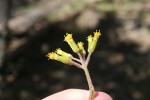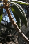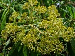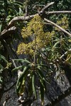 Shrub or small soft-wooded, tree, often much branched, to 7 m. Branchlets with very conspicuous pale leaf scars. Leaves crowded at ends of the branches; petiole to 2 cm; lamina 12-20(-40) × 4-8 cm, simple, oblong-elliptic, glabrous above, sparsely pubescent beneath; margin serrate. Inflorescence a large branched dense terminal panicle. Flowers yellow, unpleasantly scented in c.6-flowered capitula. |