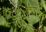 Annual herb. It differs from the somewhat similar Bidens pilosa in the more finely divided leaves with narrowly lanceolate leaflets, and the yellow ray-florets. |