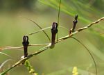 Slender perennial climbing herb. Leaves filiform, up to c. 3 cm. Flowers very dark purple, lighter maroon to whitish near the inflated base of the corolla tube. Corolla lobes hairy, fused at the apices to form a "cage". |