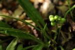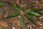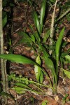 Perennial herb, growing from a Leaves mostly 2-5, rarely more, more ore less narrowly lanceolate, up to 35 cm long and up to 5 cm wide, narrowing into a distinct petiole, deep green with paler transverse bands. Flowering stem up to 37 cm tall with the peduncle 10-20 cm long, tinged and spotted with purple. Inflorescence a dense raceme. Flowers in clusters of 3-6. perianth 55-60 mm long, creamy-white with a tube c.40 mm long. Fruit 9-15 mm wide. |