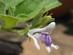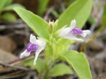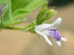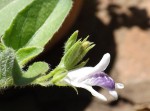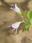 Much branched annual or perennial herb; stems to 60 cm long. Leaves linear-lanceolate to ovate, hairless to sparsely hairy; petiole indistinct. Racemes axillary and terminal with relatively few (2-4) flowers. Peduncles 1-4 cm long; bracts and bracteoles linear-subulate, hairless. Pedicels 3-10 mm long, densely pubescent, sharply reflexed in the fruiting stage. Calyx lobes subequal, linear-subulate. Corolla 15-16 mm long, more or less 2-lipped, white with mauve markings on the lower lip. Capsule 12-20 × 3-4 mm, pendulous, hairless. |